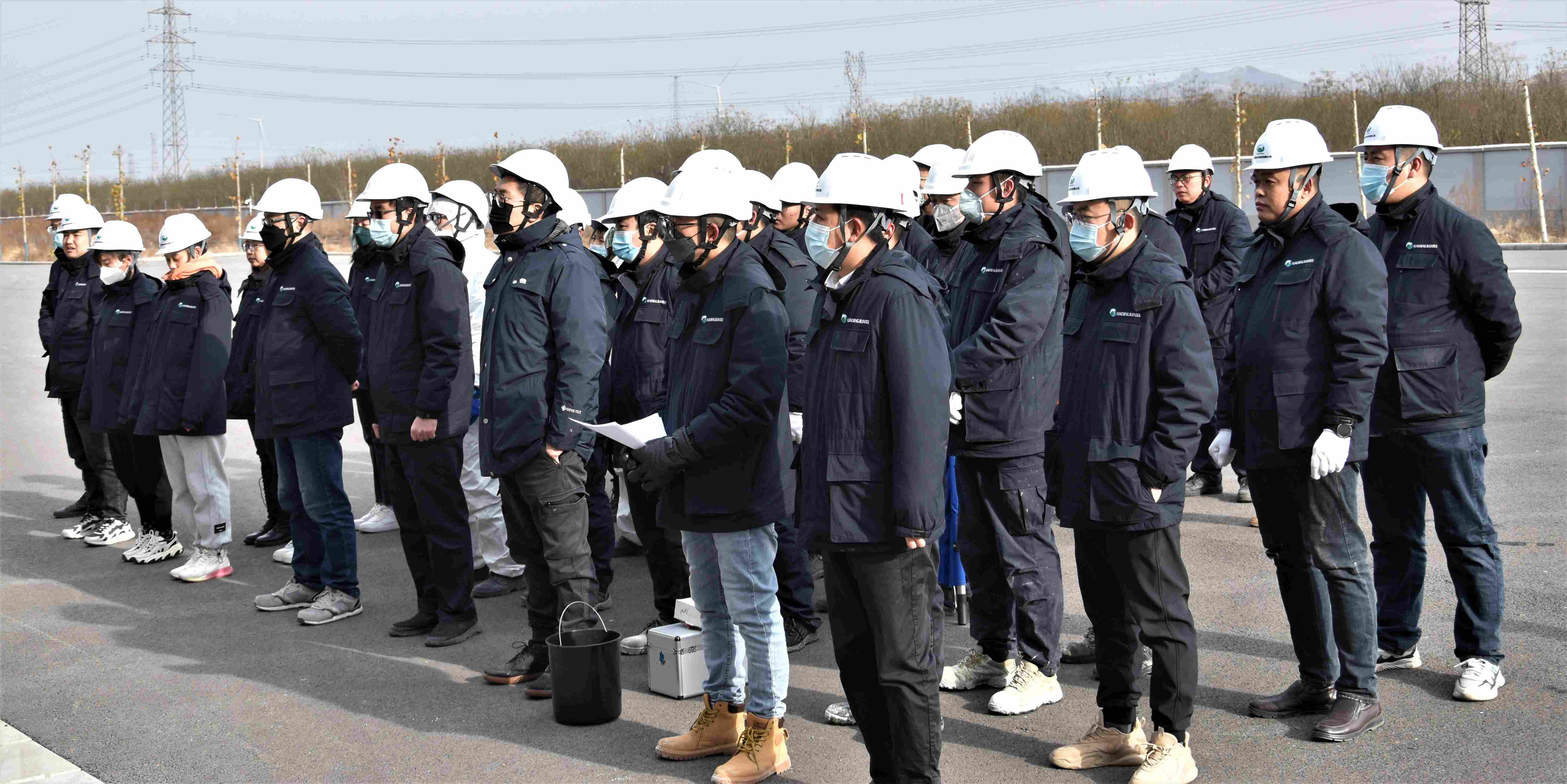 火災(zāi)撲滅后全體人員在焚燒車間門口集合,各小組對人員情況、設(shè)備情況、火災(zāi)撲滅等情況進行總結(jié),并向總指揮薛副總及李經(jīng)理報告。