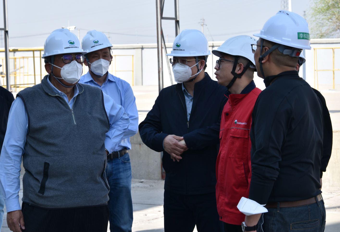 4月1日下午,日友環(huán)??萍脊煞萦邢薰径麻L張芳正來到運城潤泰視察指導(dǎo)工作。北京潤泰環(huán)??萍加邢薰究偨?jīng)理吳耀賢、副總經(jīng)理朱駿、日友特助張驥陪同考察。運城潤泰總經(jīng)理李澤治、副總經(jīng)理薛飛虎、李權(quán)耕陪同講解并進行專項工作匯報。