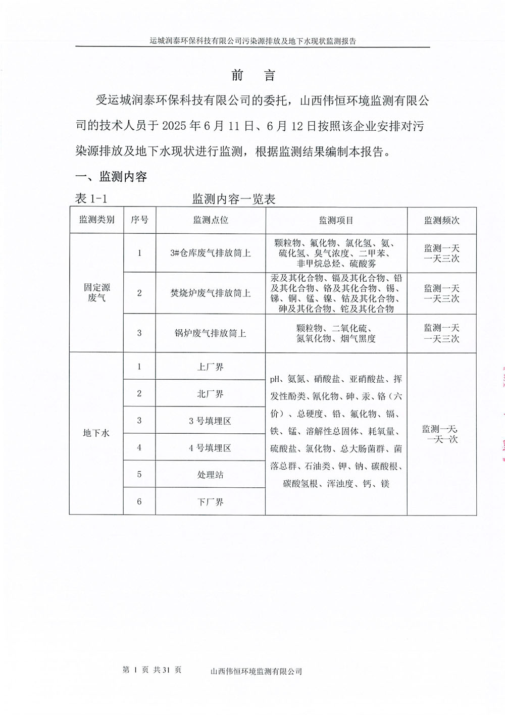 2025年潤泰環(huán)保六月份自行監(jiān)測報告
