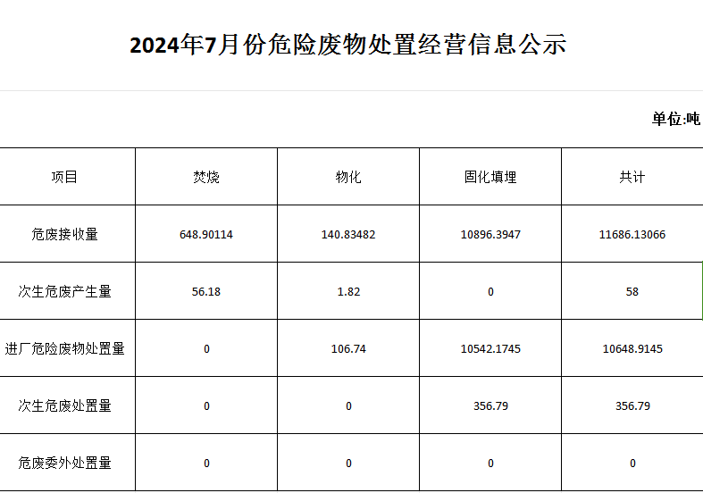 2024年9月份危險廢物處置經(jīng)營信息公示